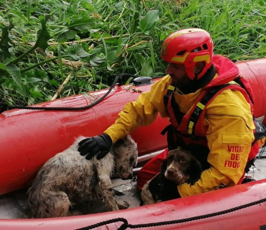Sezze, 2 cani da caccia bloccati nel laghetto: salvati dai vigili del fuoco