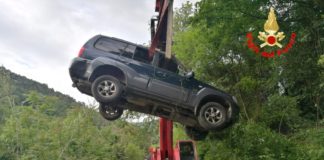 Bassiano, auto finita in una scarpata. Vigili del fuoco al lavoro