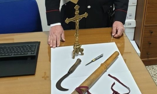 Latina, gira armato di mazza fa baseball, falcetto e pesante crocifisso in ottone: denunciato 54enne di Sezze