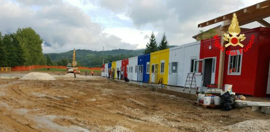 Amatrice, i vigili del fuoco di Latina al lavoro per costruire la scuola