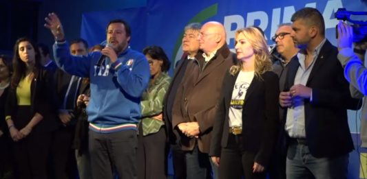 Latina, Adinolfi cita la Pontina e scoppia il microfono: è colpa dei comunisti, ma arriva Salvini
