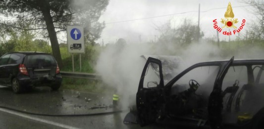Latina, scontro sull’Appia tra due auto: in fiamme una Golf, tre feriti