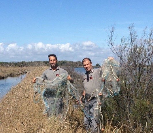 Latina, sequestrata rete da pesca illegale nascosta su sponde lago dei Monaci