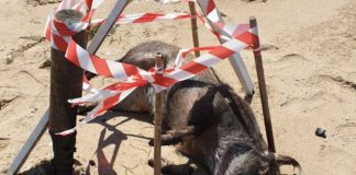 Sabaudia, carcassa di un cinghiale in spiaggia: l’intervento dei carabinieri volontari