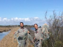 Latina, sequestrata rete da pesca illegale nascosta su sponde lago dei Monaci
