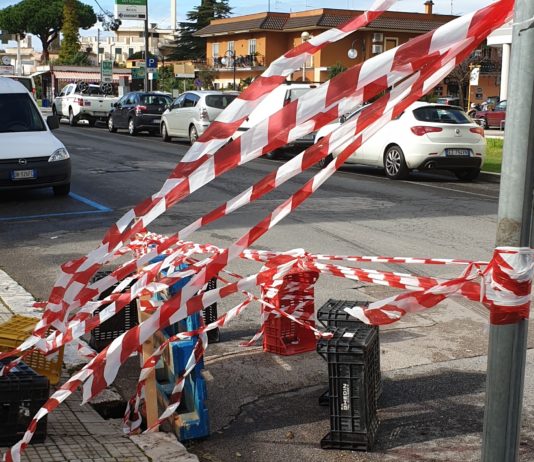 Sabaudia, in via Carlo Alberto cedimento di parte di strada e marciapiede
