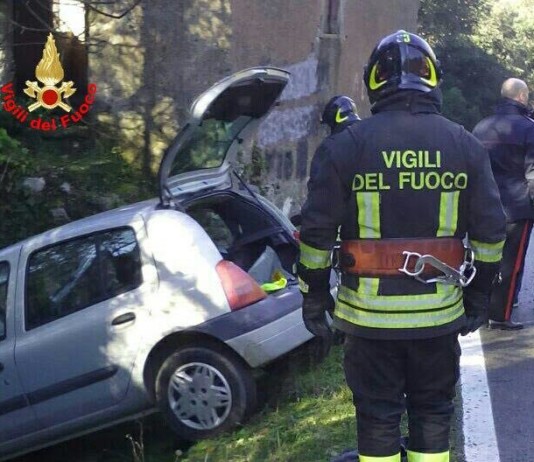 Sermoneta, un’auto finisce fuori strada. Vigili del Fuoco in azione