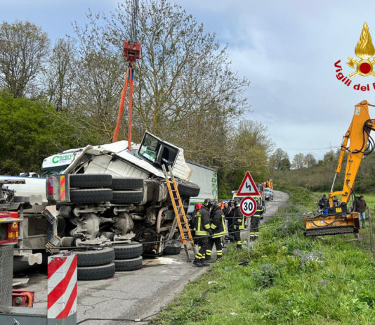 Cori, tir si ribalta dopo l’incidente. Ferito il conducente