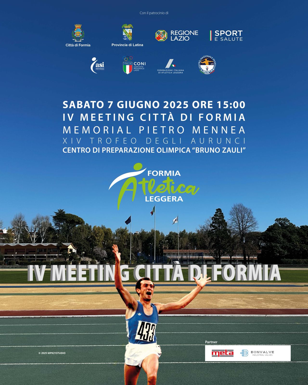 “Formia è città dello sport e dell’atletica per vocazione e ospitare per il quarto anno il Meeting Città di Formia ed il Memorial dedicato a Pietro Mennea è per noi un motivo di grandissimo orgoglio”. Con queste parole il sindaco di Formia Gianluca Taddeo ha inaugurato, questa mattina l’evento che accoglierà le categorie giovanili agli assoluti, in programma sabato 7 giugno a partire dalle ore 15.00, nello scenario suggestivo del Centro di Preparazione Olimpica “Bruno Zauli” di Formia.