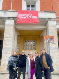 Con profonda emozione, questa mattina, insieme al papà di Veronica, Luigi De Nitto, abbiamo affisso lo striscione, con la speranza che possa rappresentare un monito permanente per tutta la comunità: un richiamo alla responsabilità collettiva, al rispetto, alla cura delle relazioni e al rifiuto di ogni forma di violenza. È anche un gesto di vicinanza sincera al papà Luigi, che da cinque anni porta avanti con dignità e determinazione una richiesta di verità e giustizia che non può e non deve cadere nel silenzio.