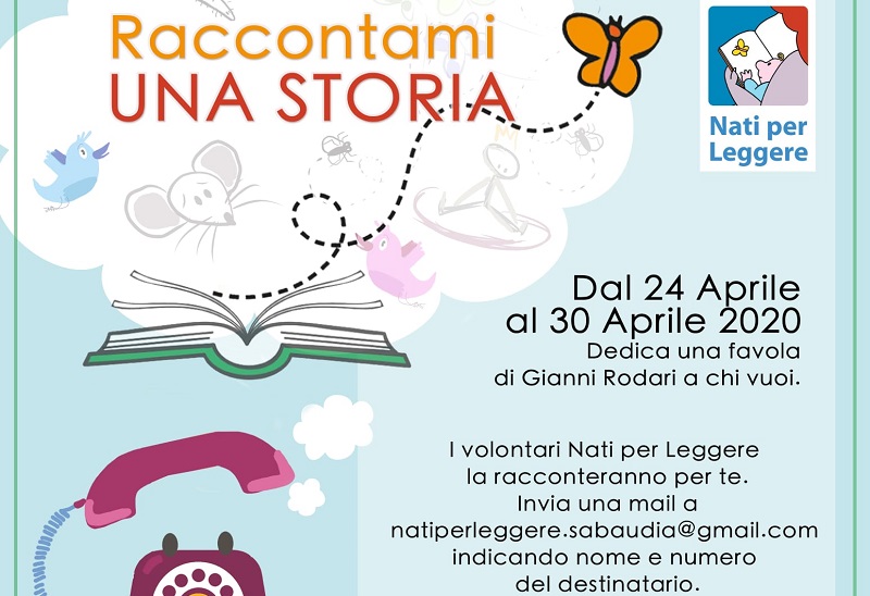 Chiunque voglia donare una storia ad una persona cara sia bambino che adulto, può inviare una mail a natiperleggere.sabaudia@gmail.com dal 24.04.2020 al 30.04.2020, indicando il nome ed il numero di telefono del destinatario della favola; verrà fissato un appuntamento telefonico durante il quale una volontaria NpL leggerà una favola. Le letture inizieranno il 25 aprile e si concluderanno il 1 maggio, ogni pomeriggio dalle 17 alle 19.30.