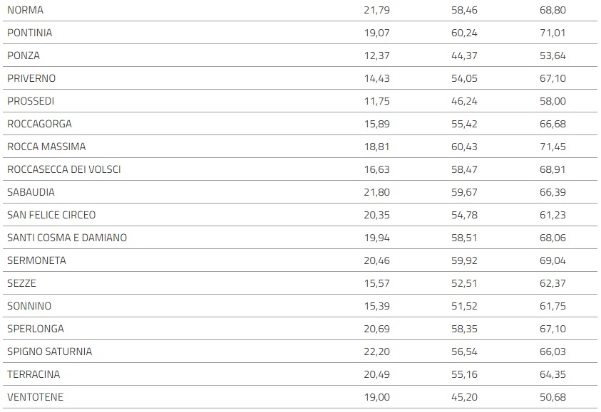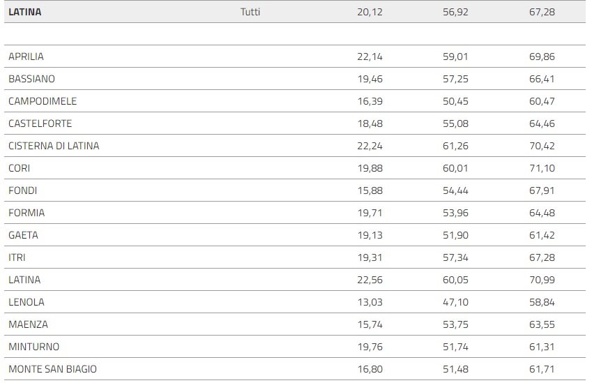 L’affluenza alle urne a Latina e in provincia, rilevata alle 23 di oggi, è del 67,28%. In testa Rocca Massima con il 71,45%. Nel capoluogo è del 70,99%. La media regionale è pari al 69,18: a Viterbo e in provincia la migliore percentuale pari al 71,79%.