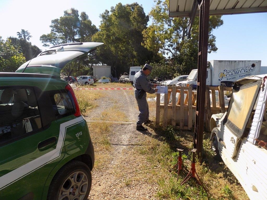 Il primo intervento è stato effettuato nei pressi di un’officina meccanica di Borgo Hermada, dove i militari hanno sequestrato un terreno di 2.000 metri quadrati con sovrastanti rifiuti speciali pericolosi e non pericolosi, consistenti in carcasse di automobili, parte di esse, mortori, pneumatici, batterie eccetera, per un quantitativo di circa 80 metri cubi. Il tutto con evidenti tracce di inquinamento del suolo a causa del percolato. Denunciato il titolare dell’attività artigianale, un 50enne del posto, per la violazione delle norme in materia ambientale e per l’inosservanza della norma regionale per il contenimento e trattamento delle acque di prima pioggia e di lavaggio delle aree esterne ai siti industriali e/o assimilati.