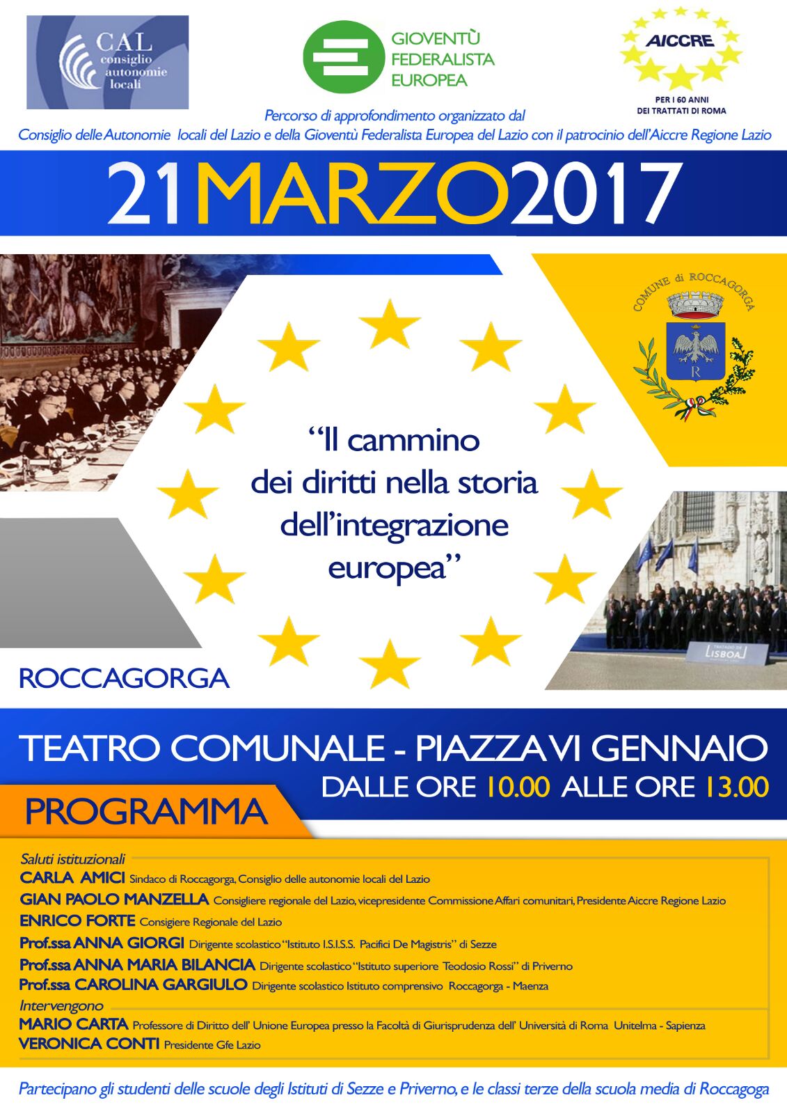 L’incontro promosso dall’Amministrazione Comunale con il Consiglio delle Autonomie Locali e dalla Gioventù Federalista Europea del Lazio, è stato patrocinato dall’Aiccre Regione Lazio in occasione della ricorrenza dei 60 anni dei trattati di Roma.