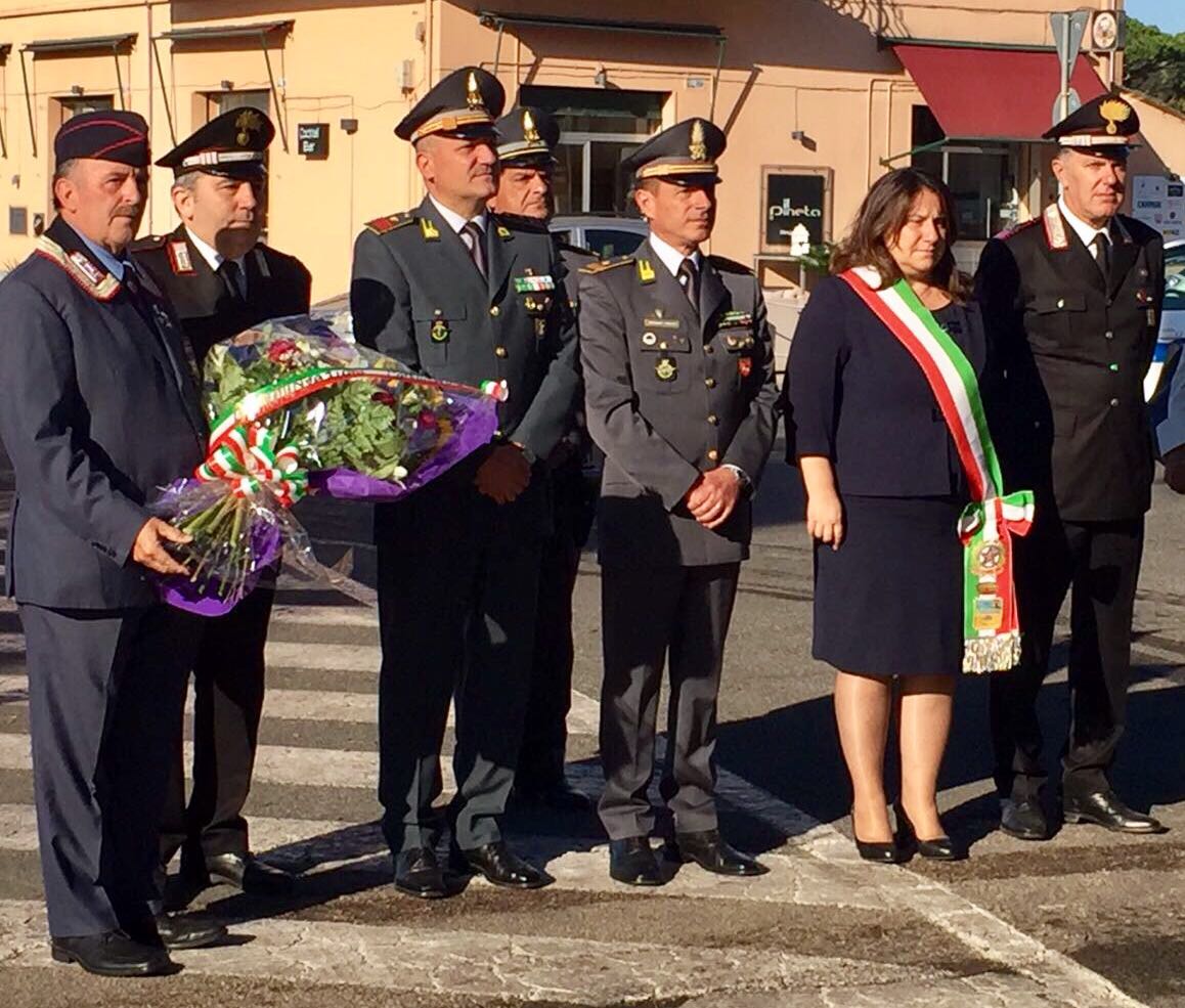 Prima di recarsi a San Donato per la cerimonia ufficiale, Sindaco e autorità hanno deposto un mazzo di fiori presso il Parco Salvo D’Acquisto a Sabaudia.