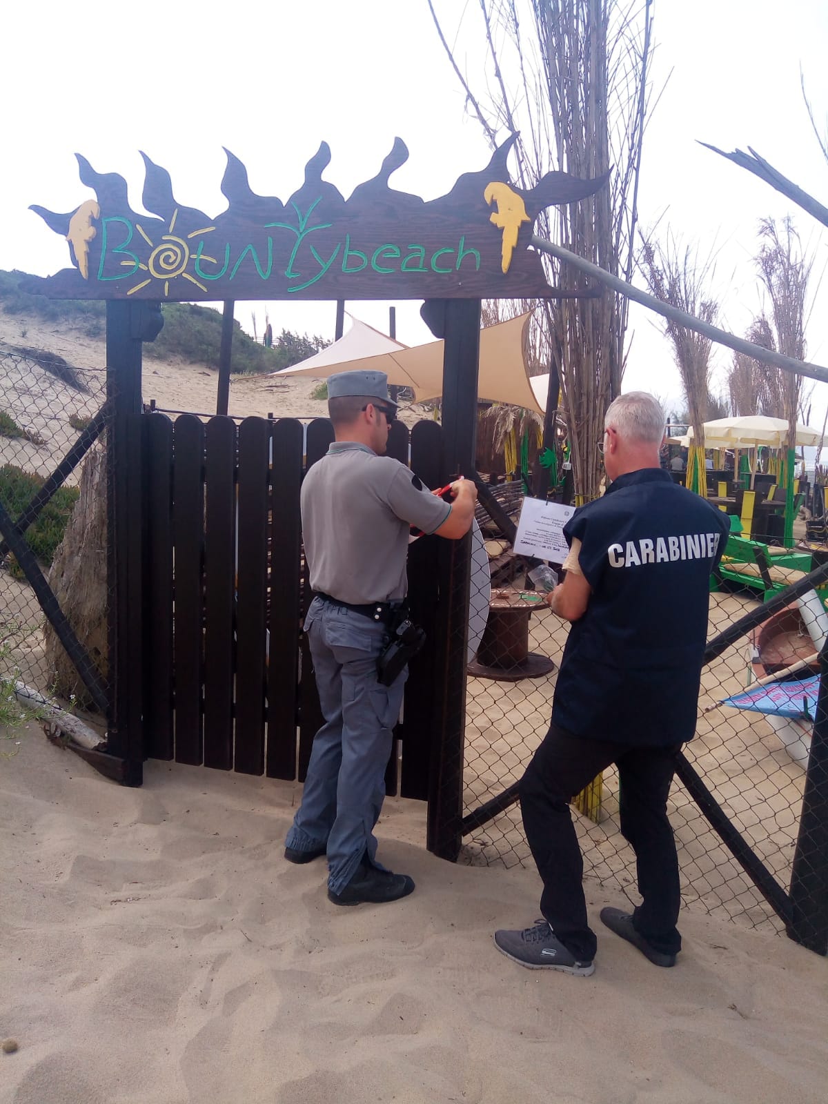 Blitz questa mattina dei carabinieri del Nipaaf di Latina e delle stazioni forestali di Sabaudia e Fogliano sul lungomare delle dune per l’esecuzione del sequestro del Bounty Beach. I sigilli, che interessano l’attività balneare in esercizio e un’area dunale di 8.000 metri quadrati, sono scattati alla luce di un decreto di sequestro urgente firmato dal sostituto procuratore Giuseppe Miliano. Contestata la trasformazione di una semplice attività di noleggio di sdraio e ombrelloni in un vero e proprio stabilimento con tutti i servizi commerciali. L’operazione di polizia giudiziaria è stata eseguita con il supporto del personale dei carabinieri del Nas e del personale della Asl. Dagli accertamenti svolti le attività e le strutture sarebbero risultate non autorizzate dal Comune di Sabaudia, dall’Ente Parco Nazionale del Circeo, e dalla Regione Lazio. Nell’ambito della stessa operazione sono stati sequestrati diversi chili di alimenti, carne e salsicce, sprovvisti di tracciabilità. Due le persone iscritte nel registro degli indagati: il gestore e il proprietario dell’area.