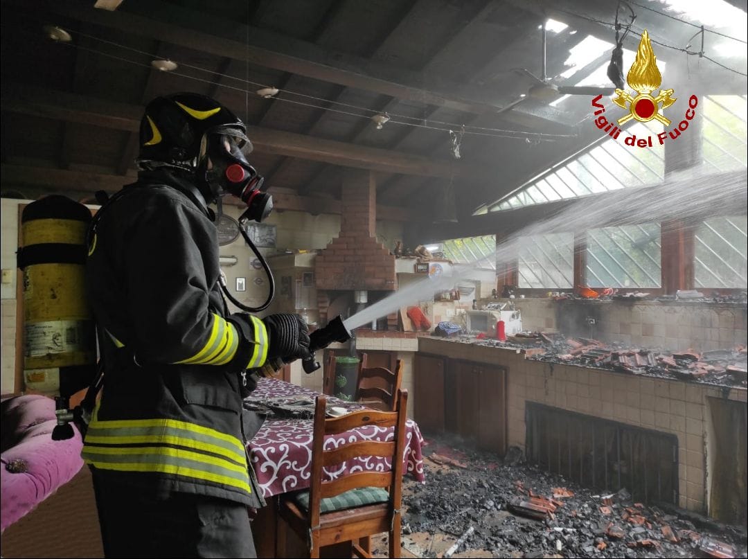 Le fiamme si propagavano all’interno di una veranda adibita a cucina in un appartamento di un consorzio privato.