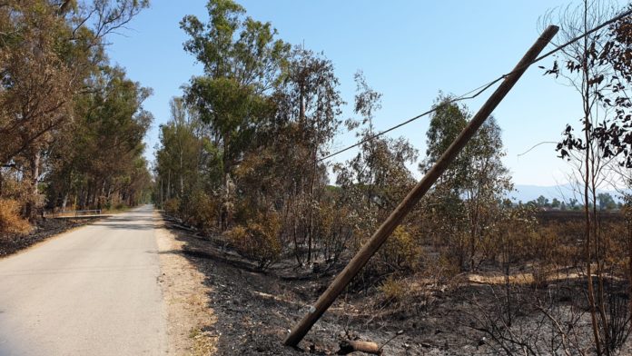 Nella zona del Galoppatoio le fiamme hanno bruciato anche la linea aerea del telefono, con una decina di pali danneggiati. In tutta l’area sono andati in fumo parte della fascia frangivento di eucalipto, una sughereta e sterpaglie.