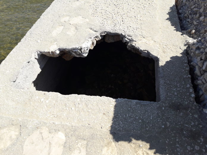 Trappole mortali sul molo del canale di Caprolace a Sabaudia. Ce le ha segnalate un nostro lettore attraverso fotografie che mostrano lo sprofondamento in due punti del molo in cemento che delimita le sponde del canale di Caprolace dell’omonimo lago nei pressi della Bufalara. Qualche giorno fa un bambino è finito in una delle due voragini e si è ferito. Poteva andare peggio. Le due buche costituiscono un evidente pericolo per la pubblica incolumità e sono lì da tempo. Ci si domanda quale sia l’istituzione competente sulla quale grava l’onere di provvedere. Alla stessa rivolgiamo l’appello del nostro lettore per un intervento rapido e risolutivo del problema prima che ci scappi il morto.