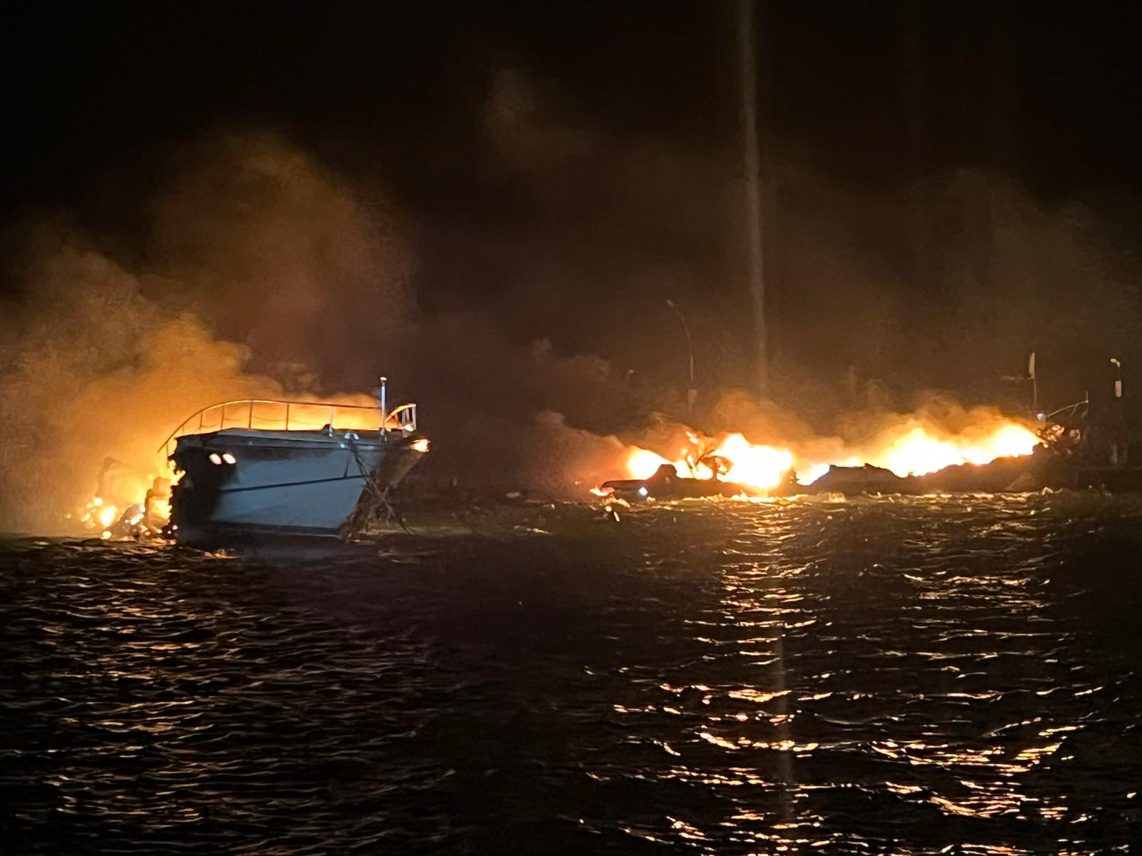 Le fiamme hanno avvolto tre imbarcazioni da diporto a motore di grandi dimensioni, provocando danni significativi. Fortunatamente nessun ferito. Le operazioni di spegnimento sono durate diverse ore.
