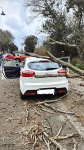 Questa mattina, intorno alle 11:30, un albero è stato abbattuto dal vento in via del Brecciaro a San Felice Circeo, colpendo un’auto in transito con due persone a bordo.