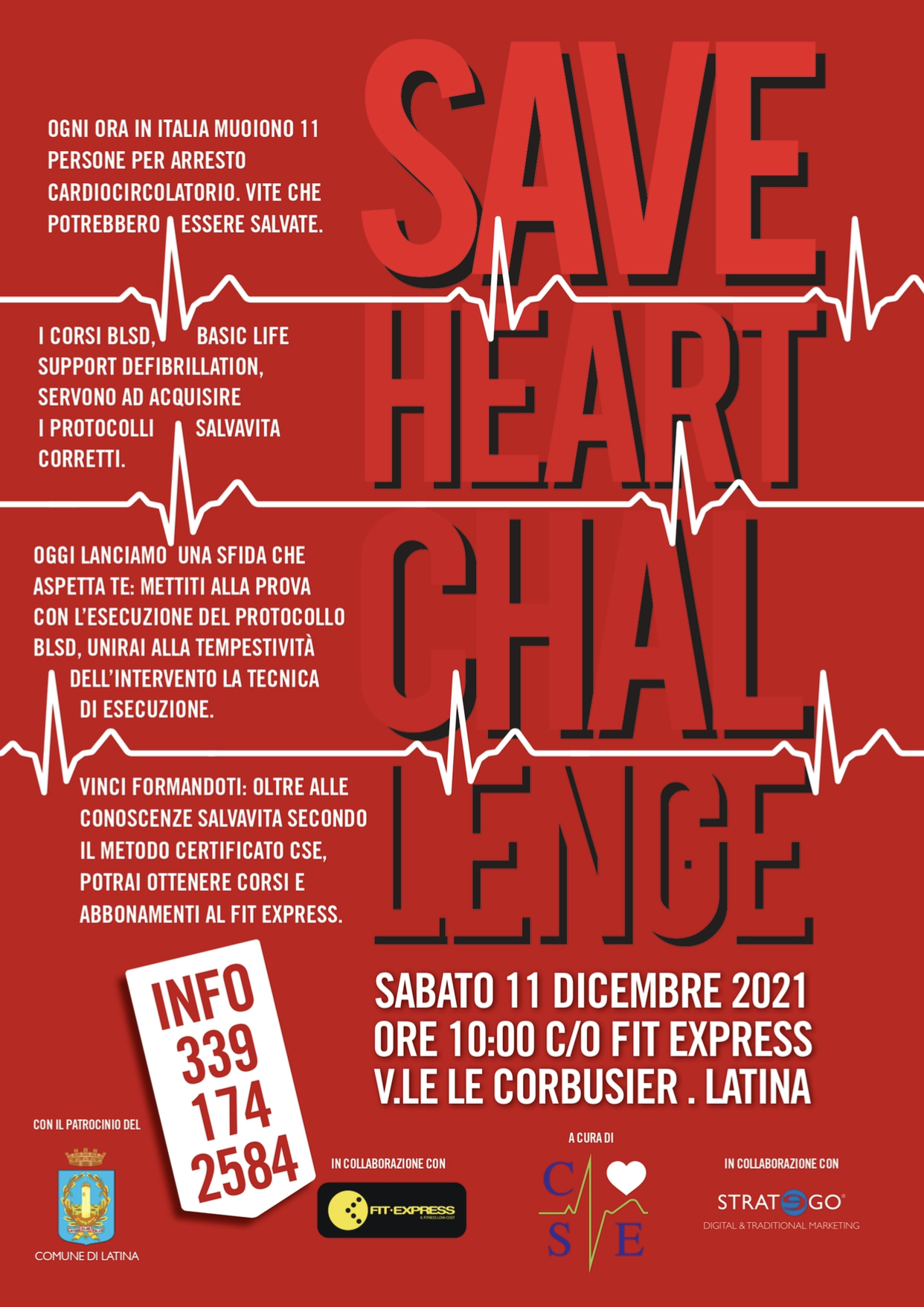 Save Heart Challenge si terrà sabato 11 dicembre 2021 nei locali dell’impianto sportivo Fit Express di Viale Le Corbusier a Latina dalle 10 alle 16.