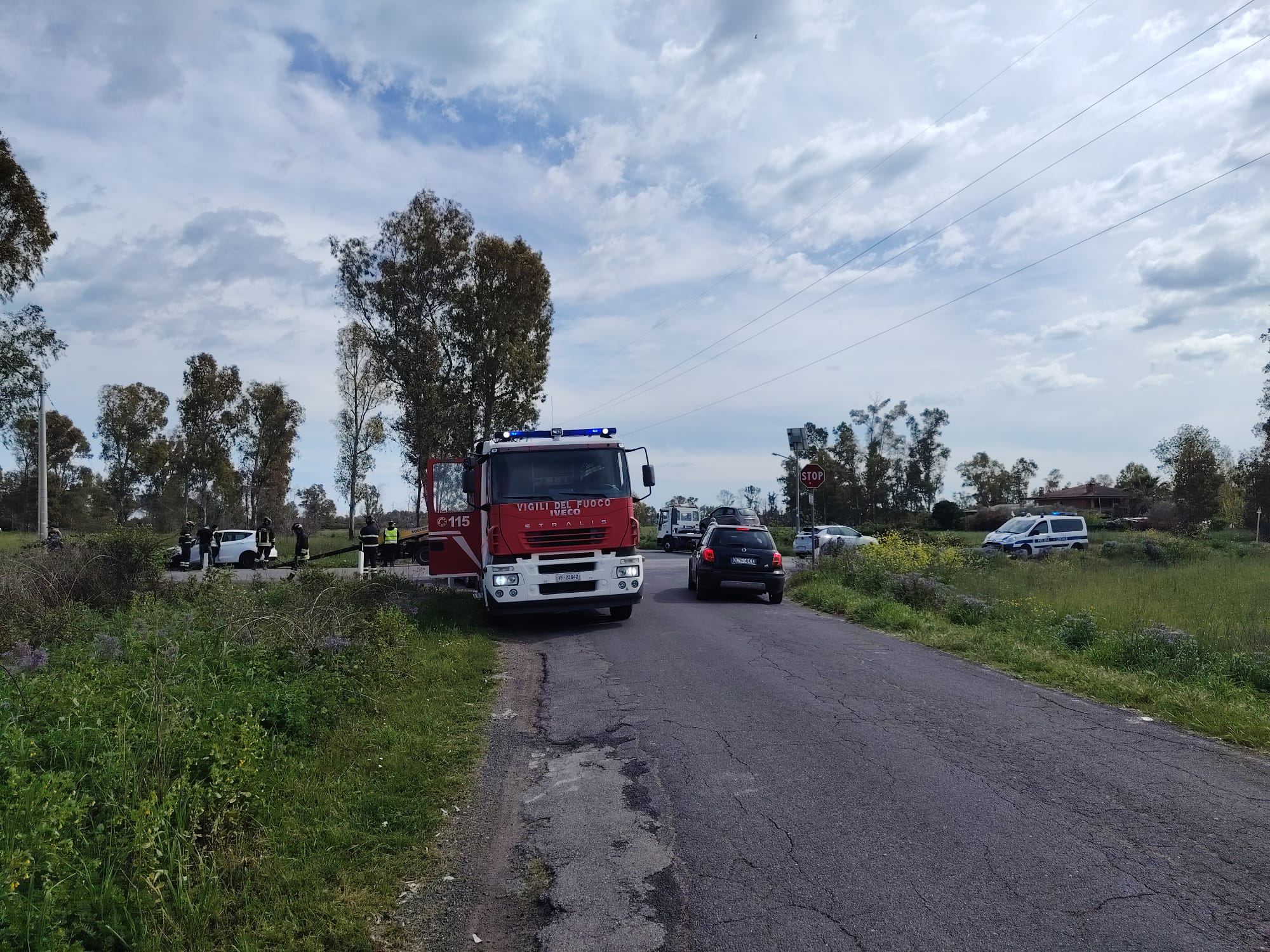 Incidente nel primo pomeriggio all’ incrocio tra Strada della Chiesuola e Strada del Saraceno, nei pressi di Borgo Piave a Latina.