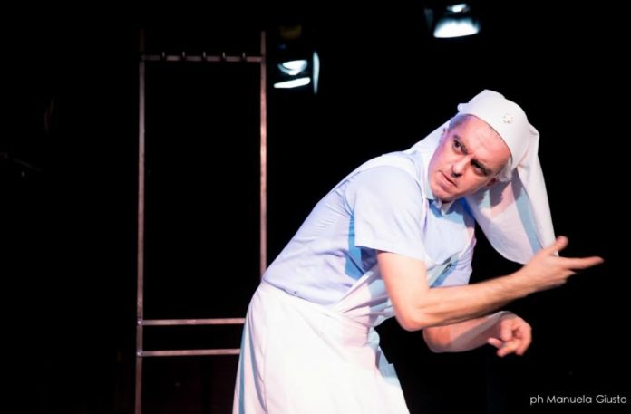 Con un linguaggio misto di aulico e dialettale, interpretando il ruolo della protagonista, la dama di carità Maria Angulema, e anche quello di tutti gli altri personaggi, tra malati veri, malati finti, parenti, portantini e pellegrini, Cosentino disegna un’umanità così disperata da sconfinare nella più grande comicità. È una sorta di mistero buffo contemporaneo, decisamente connotato in senso grottesco.