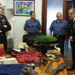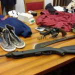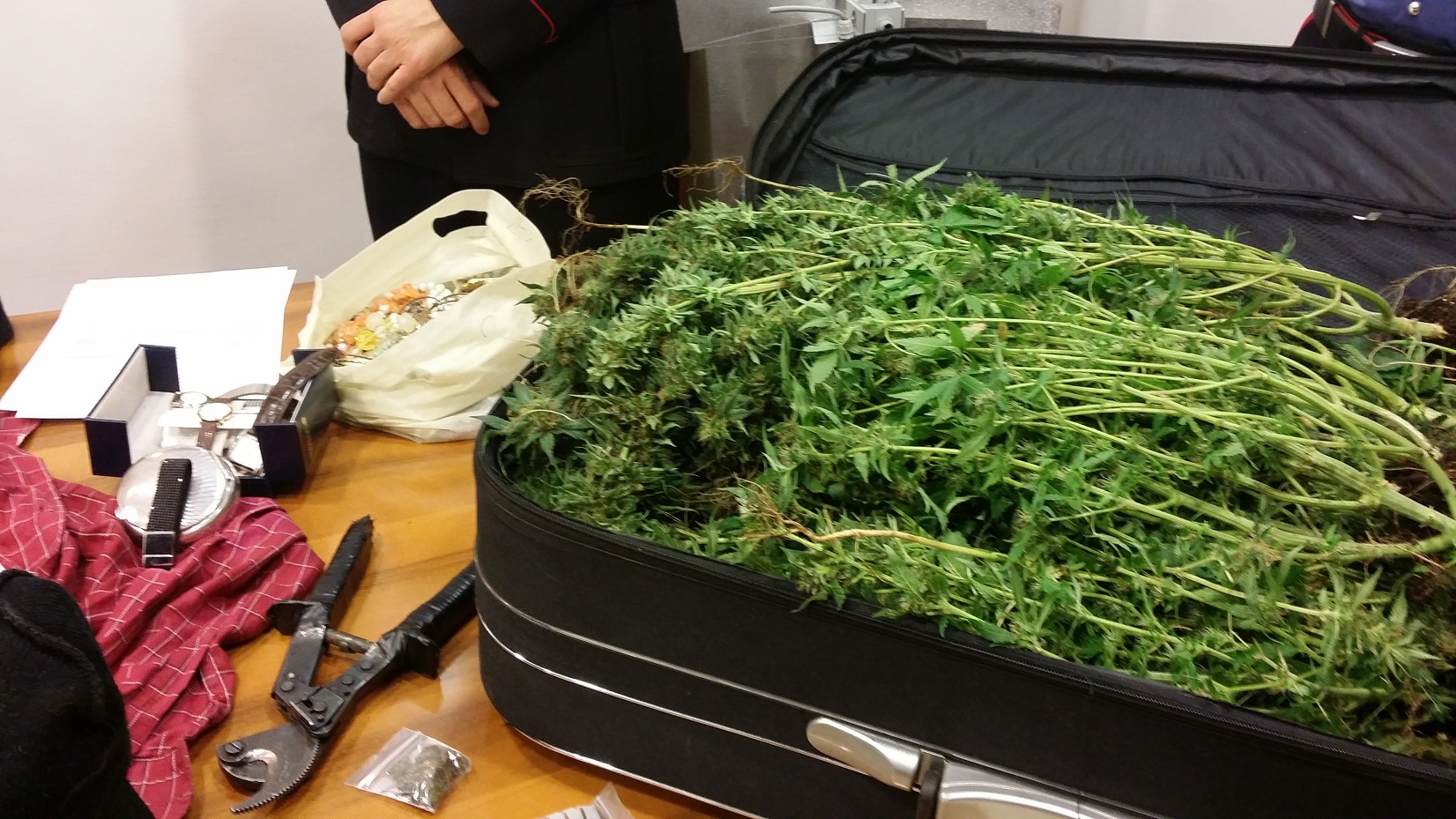 Accanto al letto è stata rinvenuta una balestra. Nel corso della perquisizione sono stati rinvenuti e posti sotto sequestro anche altre armi e oggetti probabilmente utilizzati anche in altre rapine: una pistola modificata e matricola abrasa con munizioni artigianali, un fucile ad aria compressa, due passamontagna e una cesoia dalle lame molto affilate. Ma soprattutto i carabinieri hanno rinvenuto gli abiti indossati da entrambi gli stranieri nel giorno della rapina di martedì scorso, come ripresi dalle telecamere. Una tuta da ginnastica blu e una camicia rossa a quadri, le due paia di scarpe e gli occhiali da sole. Poi oggetti preziosi, orologi e telefoni cellulari ritenuti provento di furti e rapine. E non solo. Nelle pertinenze dell’abitazione di Roccagorga è stata scoperta una serra con 25 piante di marijuana di ottima qualità e foglie già essiccate e riposte in bustine.