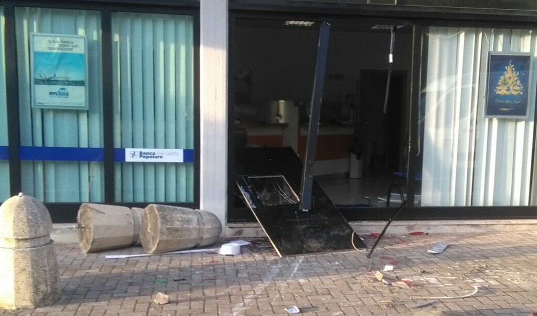 E’ stata rinvenuta nelle campagne setine l’auto utilizzata come ariete per smurare lo sportello bancomat della filiale della Banca Popolare del Lazio di via Veneto a Sezze Scalo. Il colpo è stato messo a segno nella notte, intorno alle 2 e mezza, quando è scattato l’allarme alla centrale della vigilanza privata. A distanza di due mesi dal tentato furto in danno della stessa agenzia, i ladri sono tornati in azione sventrando la parete esterna del locale con un Suv Ford, poi abbandonato e ritrovato dai carabinieri della locale stazione. Il bancomat era stato caricato di contanti ieri sera, quindi si presume che il colpo abbia fruttato circa 50mila euro… inutilizzabili, dal momento che è esploso l’inchiostro macchia-banconote. L’unica telecamera presente è puntata verso lo spazio di prelievo dello sportello, quindi al momento non è dato sapere quante persone abbiano partecipato al furto. Non si esclude, tuttavia, che altre telecamere nei paraggi possano aver ripreso azioni interessanti ai fini delle indagini.