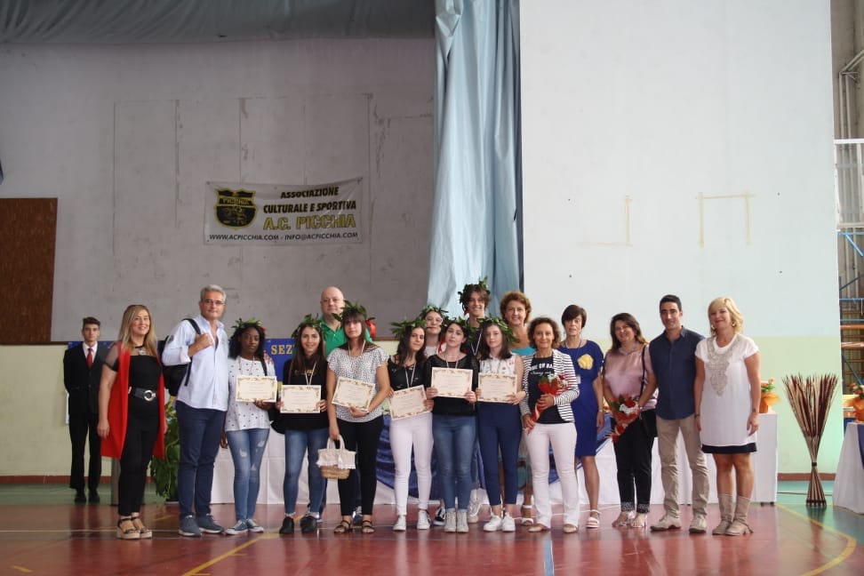 Festa grande ieri all’Isiss Pacifici e De Magistris di Sezze per la prima campanella del nuovo anno scolastico. Le matricole2018/19, come da tradizione, sono state accolte dai loro nuovi insegnanti e dagli studenti degli altri anni per augurarsi tutti insieme un buon anno scolastico. Emozionante e coinvolgente il momento dell’Inno Nazionale che ha accomunato studenti genitori e docenti. L’organizzazione dell’evento di accoglienza è stato curato dalle docenti Valentina De Angelis e Roberta Molina. Le giovani matricole sono state accolte dai docenti oltre che dal Dirigente Scolastico Prof.ssa Anna Giorgi e dal Dirigente Scolastico dell’IC Caio Valerio Flacco di Sezze Scalo Prof.ssa Carolina Gargiulo. Non potevano mancare per un saluto alle giovani leve le Istituzioni locali: il Sindaco Sergio Di Raimo, l’Assessore alla Cultura Paola Di Veroli, i Consiglieri Francesca Barbati e Giovanni Bernasconi. Ha voluto far sentire la propria vicinanza con la sua presenza anche il Presidente del Consiglio di Istituto Carlo Costantini. La cerimonia ha visto anche la premiazione delle eccellenze dell’Istituto, medaglie attestati e corone di alloro, per quanti hanno ottenuto il massimo dei voti all’Esame di Stato. Un riconoscimento anche per quegli alunni ancora frequentanti che hanno approfondito la conoscenza delle lingue straniere, conseguendo certificazioni specifiche di differenti livelli di inglese e spagnolo a cura delle Prof.sse Lucia Rossi e Prof.ssa Annalisa Sangiorgi.