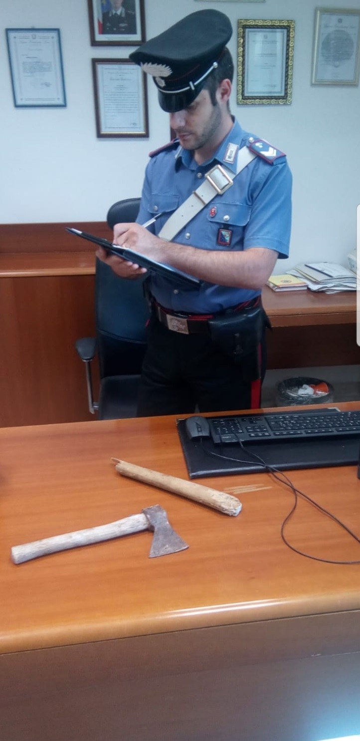 Il giovane, in stato di alterazione psicofisica, mediante l’utilizzo di un’ascia e un manico di un attrezzo agricolo, ha minacciato il proprio genitore di 45 anni, danneggiando suppellettili varie dell’abitazione paterna.