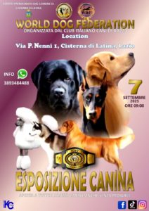 Cani di razza e proprietari si daranno appuntamento domenica 7 settembre, a partire dalle ore 9, presso il Centro Polivalente San Valentino di via Nenni a Cisterna, per una tappa della World Dog Federation. La manifestazione, organizzata dal Club Italiano Cani di Razza con il sostegno del Comune, offrirà alla città una giornata interamente dedicata ai migliori amici dell’uomo.