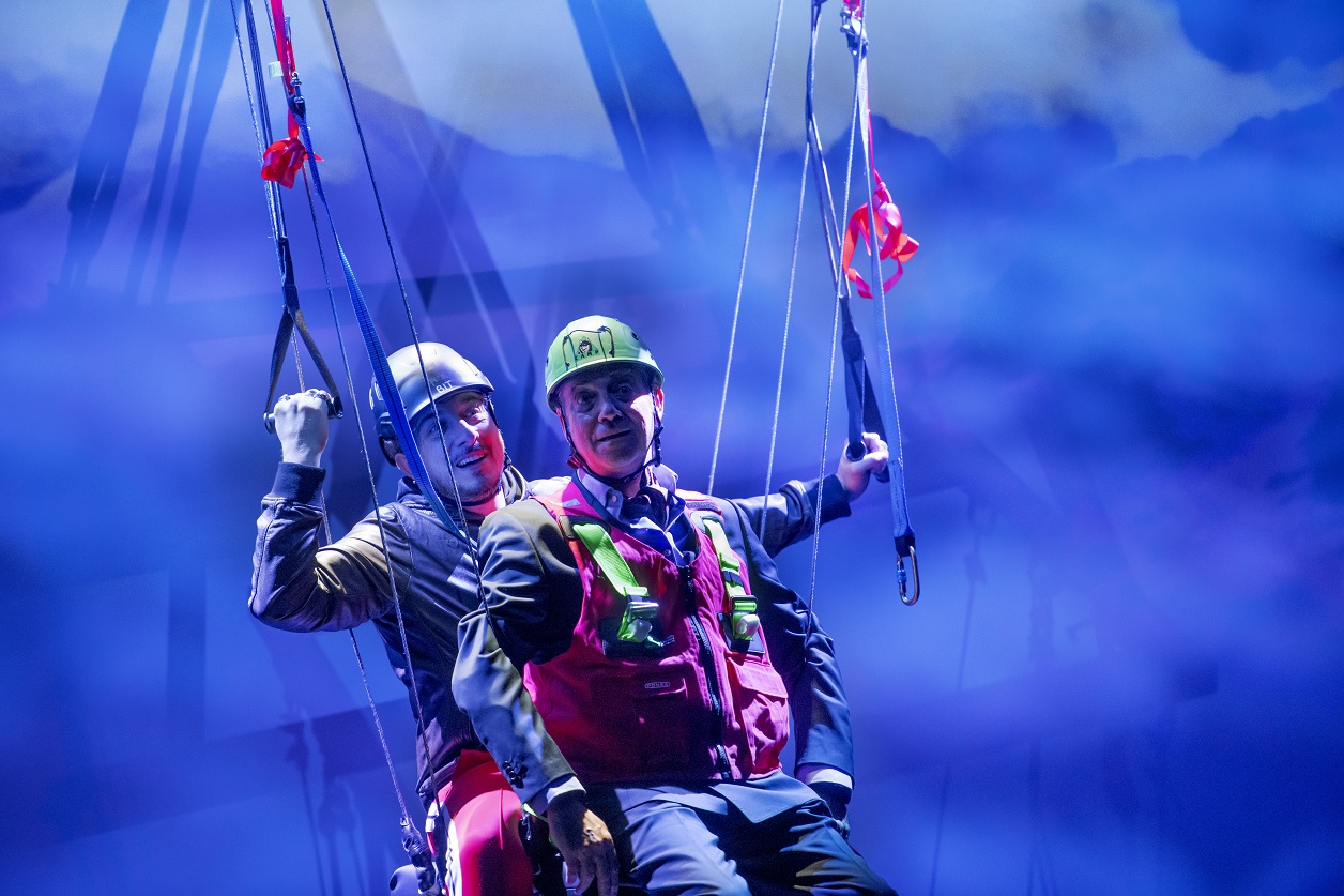 “Per la regia – racconta il regista Alberto Ferrari – mi sono immaginato un grande spazio aperto, un grande panorama illuminato come una giornata estiva, una notte autunnale, un pomeriggio piovoso. E un piano inclinato che dirada verso il proscenio e che racchiuda al suo interno tutti i luoghi della vicenda, che si aprono e diventano a volte studio, camera da letto, salotto, a volte ristorante eccetera. Ma poi richiudendosi all’interno del praticabile ci restituiscono solo una pianura inclinata in cui far scivolare dolcemente la sedia a rotelle o faticosamente spingerla in salita. Un non luogo esterno che potrebbe essere una spiaggia con il mare davanti, la platea, o un prato dove volano i parapendii e dove nel finale, per realismo magico, seguendo un aquilone che Driss fa volare nel vento di un pomeriggio, Philippe finalmente acquisisce la sua leggerezza e si stacca dalla sua sedia a rotelle e vola come se fosse sul parapendio lasciando finalmente quella sedia che lo schiacciava verso la gravità più pesante del mondo. Philippe ha perso la gravità. Ha imparato la leggerezza e Driss, la leggera profondità che non lo fa volare e tiene Philippe ancorato a sé, come un riferimento importante. La loro amicizia, una centratura, per vivere ed essere uomini un po’ più̀ consapevoli della meraviglia e poter ridere, finalmente a crepapelle”.