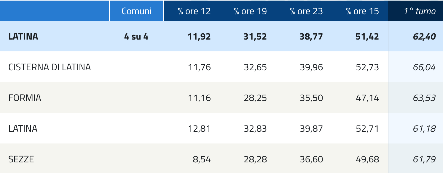 In corso i ballottaggi per le elezioni dei sindaci di Latina, Formia, Cisterna e Sezze.