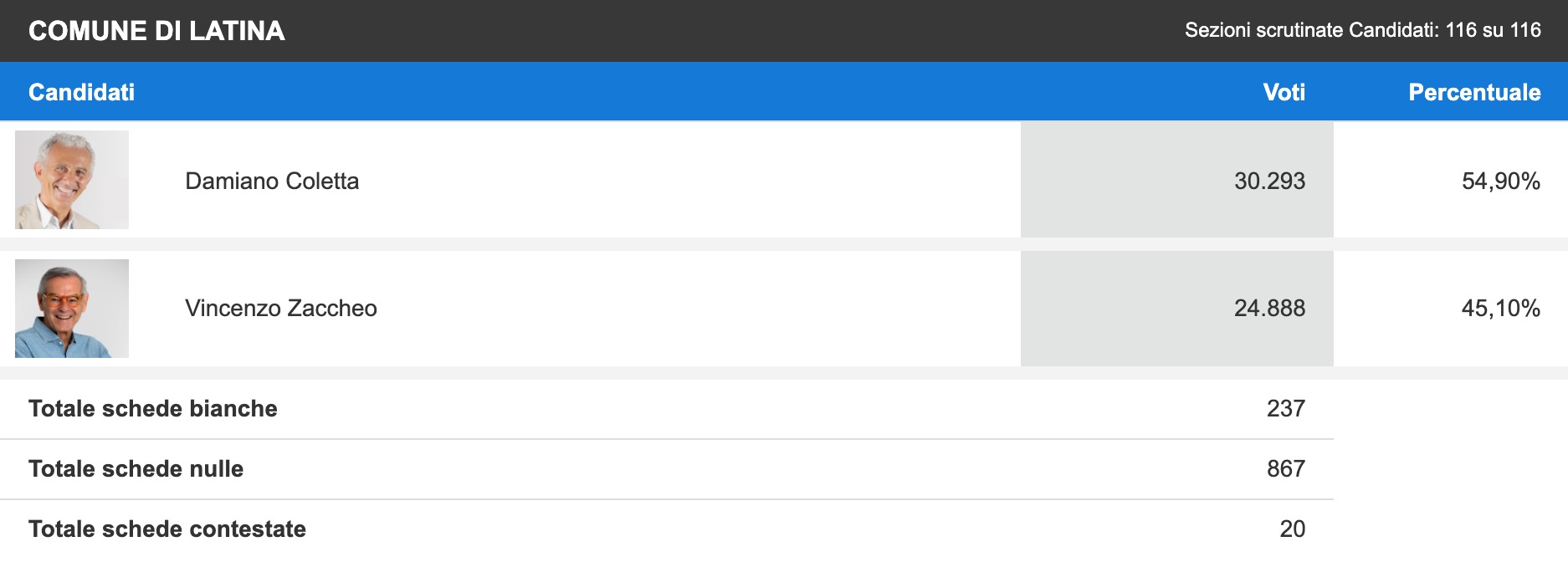 I conteggi dei rappresentanti di lista portano al dato. Il nuovo sindaco di Sezze è Lucidi in attesa degli scrutini ufficiali.