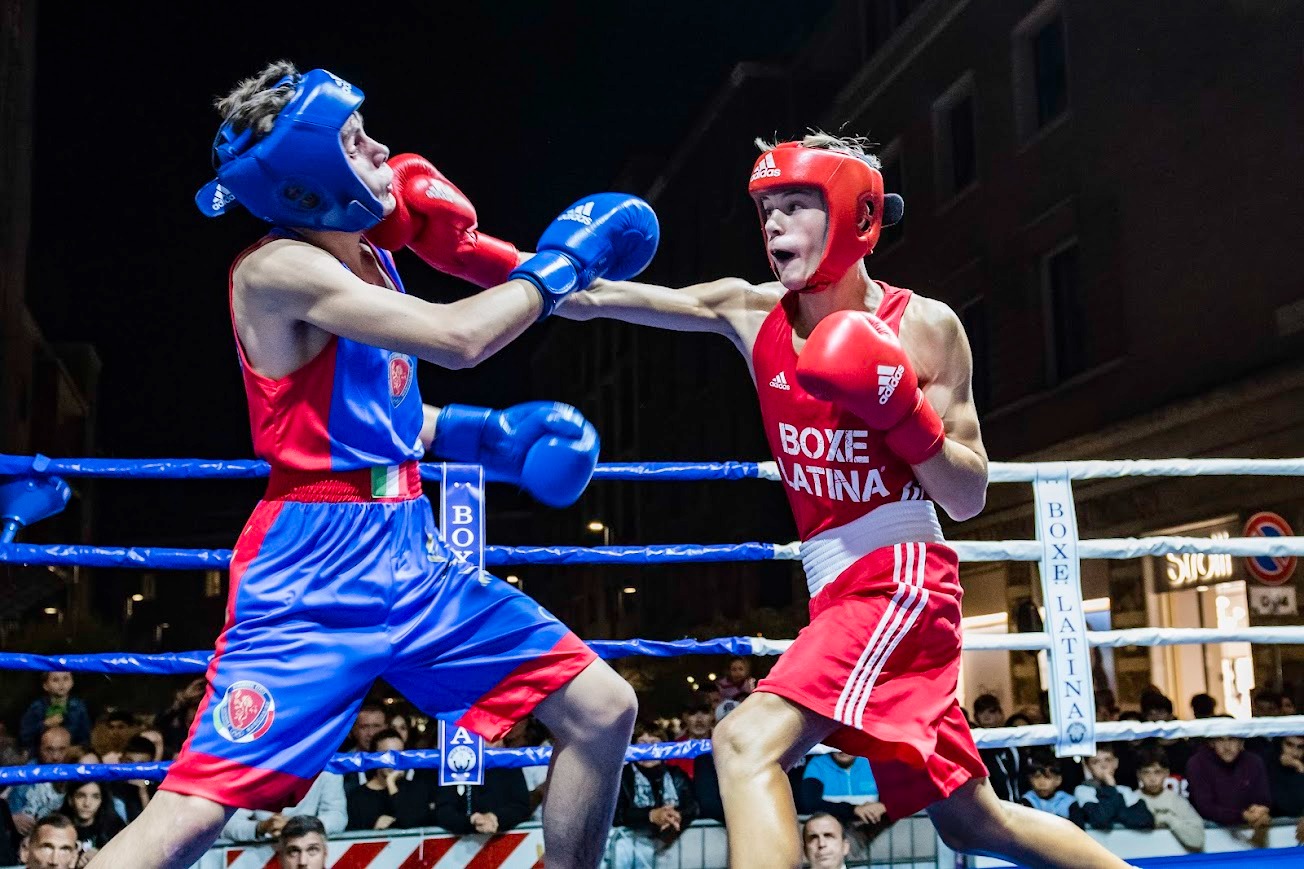 Un impatto scenico notevole lungo Corso della Repubblica, con lo sfondo di Piazza del Popolo, in un sabato sera ovviamente affollato. Nel cuore della città di Latina, nel cuore del Villaggio Europeo dello Sport,il ring è stato uno degli eventi di maggior richiamo della settimana appena archiviata. Dieci incontri nella riunione interregionale Lazio vs Campania, organizzato dalla Boxe Latina.