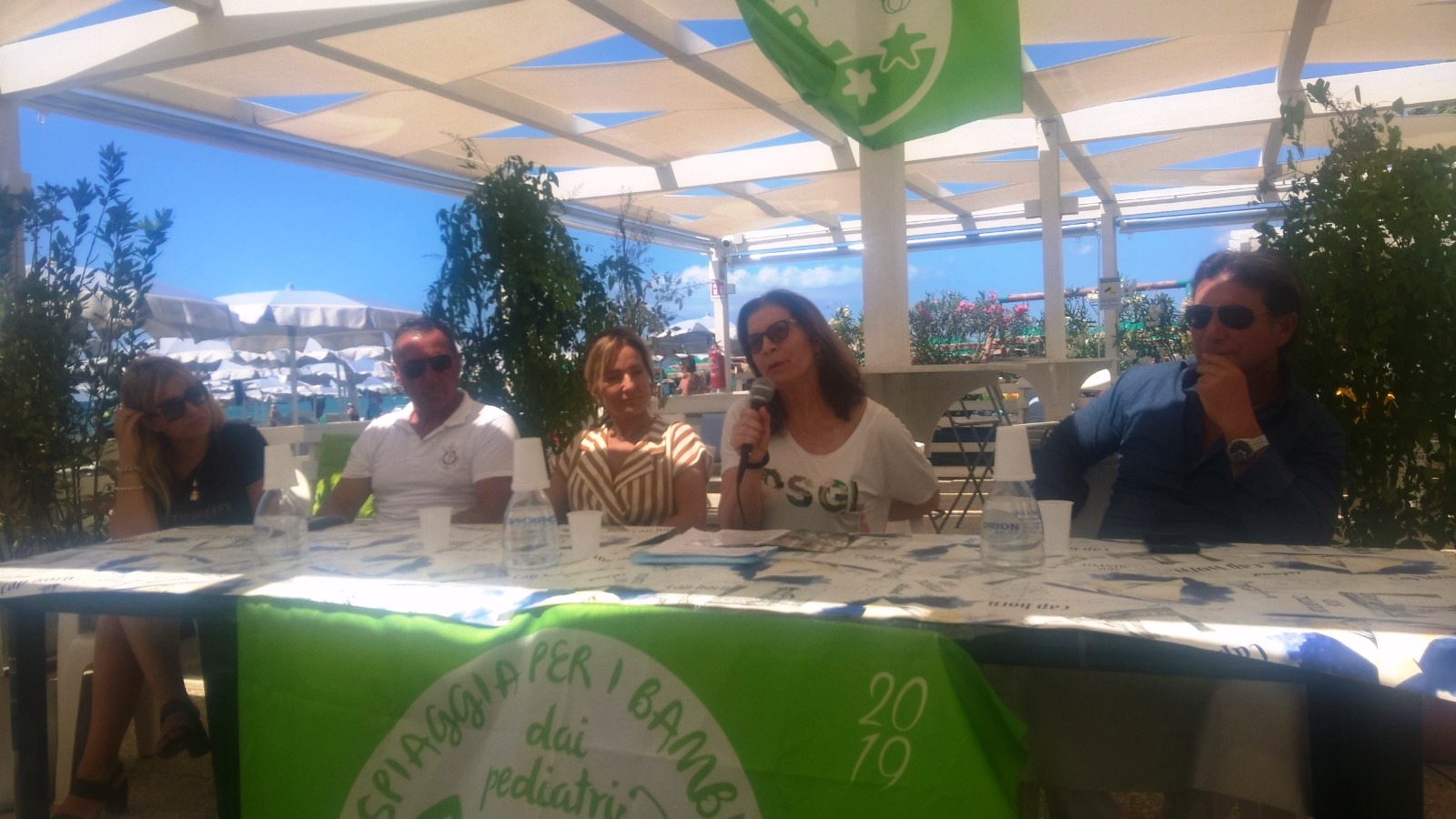 Oggi, presso lo stabilimento balneare “Lido Corallo”, si è tenuta la conferenza stampa di consegna della Bandiera Verde dei pediatri 2019, riconoscimento ideato per premiare le località marine con caratteristiche adatte ai bambini, selezionate attraverso un’indagine condotta fra un campione di pediatri. Presenti all’incontro gli assessori comunali Emanuela Zappone (Ambiente) e Barbara Cerilli (Turismo), il delegato comunale alla Sanità Maurizia Barboni (che lo scorso giugno ha ritirato il vessillo in una cerimonia svoltasi a Praia a Mare, presso Cosenza), il presidente del SIB (Sindacato Balneari) Felice Di Spigno, e l’operatore balneare Gino Di Lello.