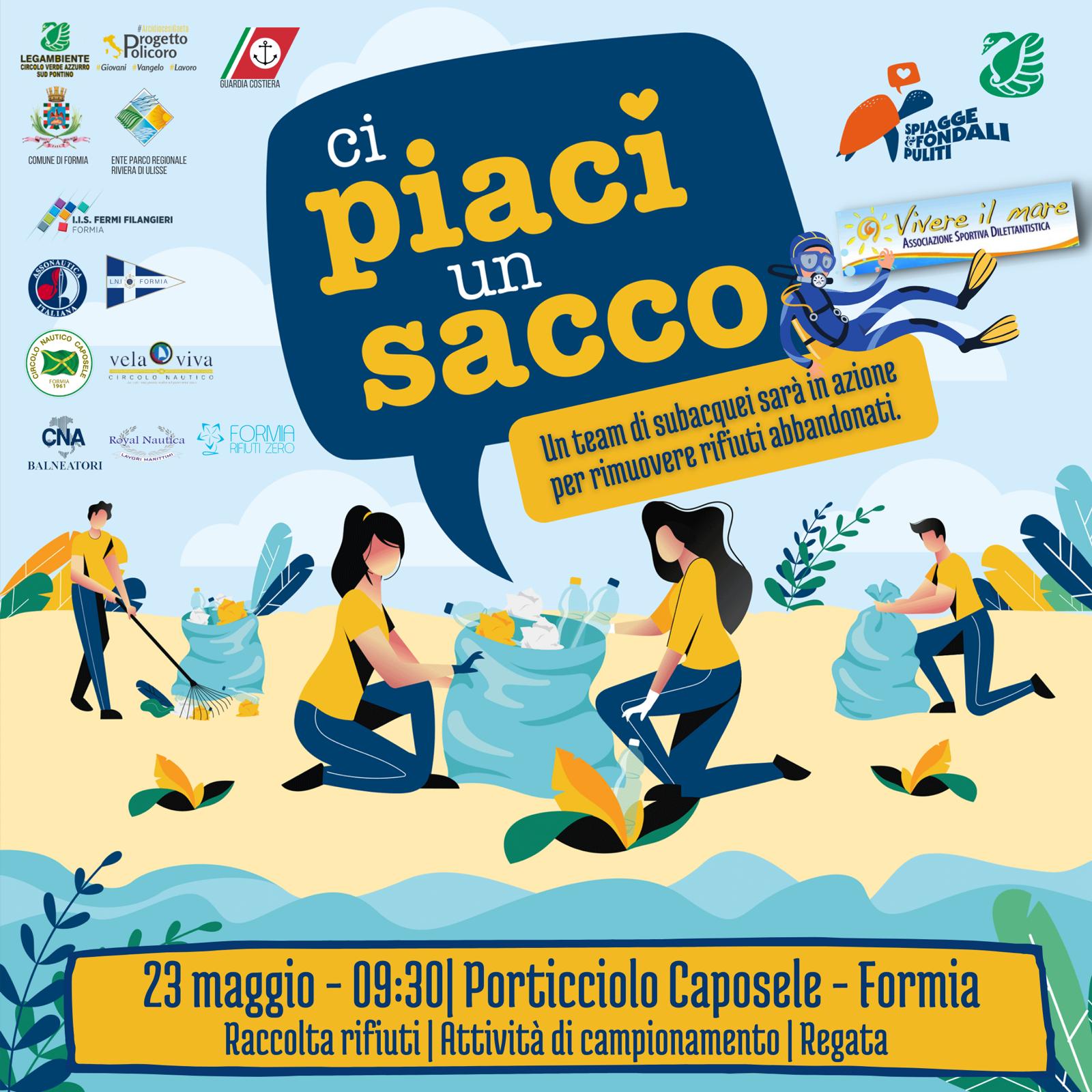 Promuove l ‘iniziativa Legambiente Circolo Sud Pontino e aderiscono il Progetto Policoro della Arcidiocesi di Gaeta, l’Istituto Bruno Tallini ad Indirizzo Ambientale di Formia, la Lega Navale Italiana di Formia, il Circolo Nautico Caposele, l’Associazione Vivere il Mare di Formia, il Circolo Nautico Velaviva di Formia. Tra le associazioni di categoria Assonautica, CNA Balneatori. Collabora Royal Nautica e Formia Rifiuti Zero. L’iniziativa è patrocinata dal comune di Formia. Si svolgerà in tre fasi. La prima a terra con la rimozione di rifiuti tra le scogliere e nell’area portuale, la seconda in mare dove un gruppo di dieci sommozzatori provvederà a ripulire il fondale ripresi in diretta dalla telecamera di un ROV e una terza, conclusiva, che vedrà la partecipazione di piccole imbarcazioni della Lega Navale che incroceranno nelle vicinanze delle operazioni subacquee. Unità della Guardia Costiera saranno presenti durante tutta la durata della iniziativa facilmente visibile anche da terra.