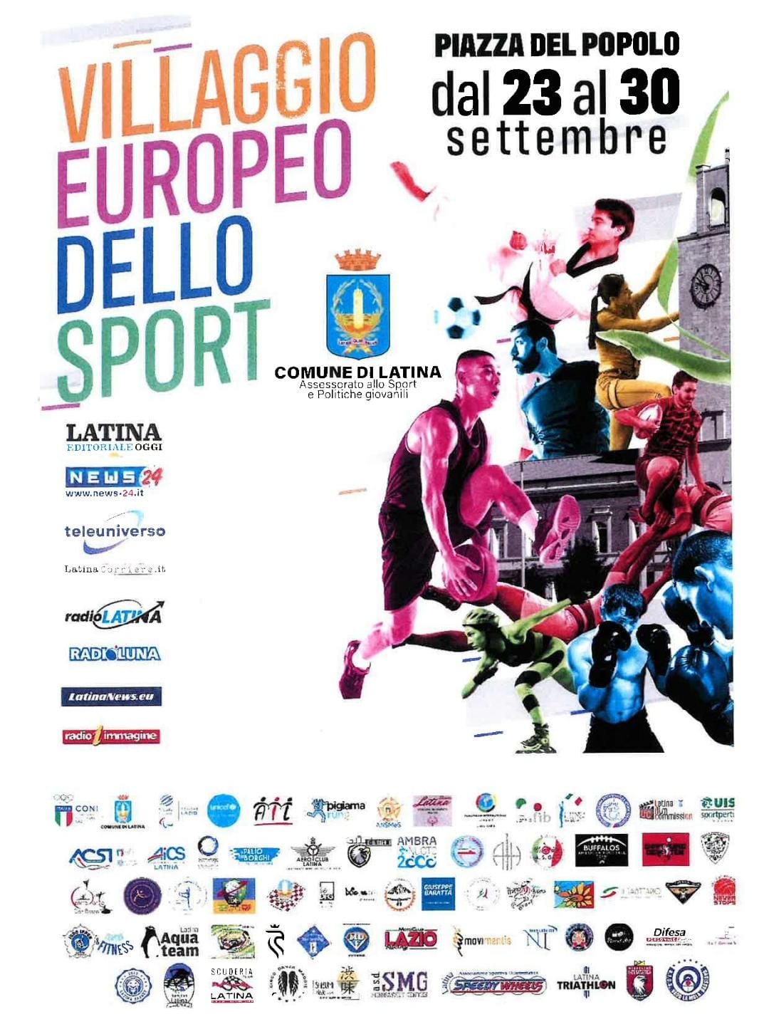 Piazza del Popolo si trasformerà per otto giorni nel cuore pulsante di Latina. Qui sorgerà il Villaggio Europeo dello Sport, spazio aperto a cittadini, famiglie e associazioni che dal 23 al 30 settembre daranno vita a un calendario fitto di appuntamenti.