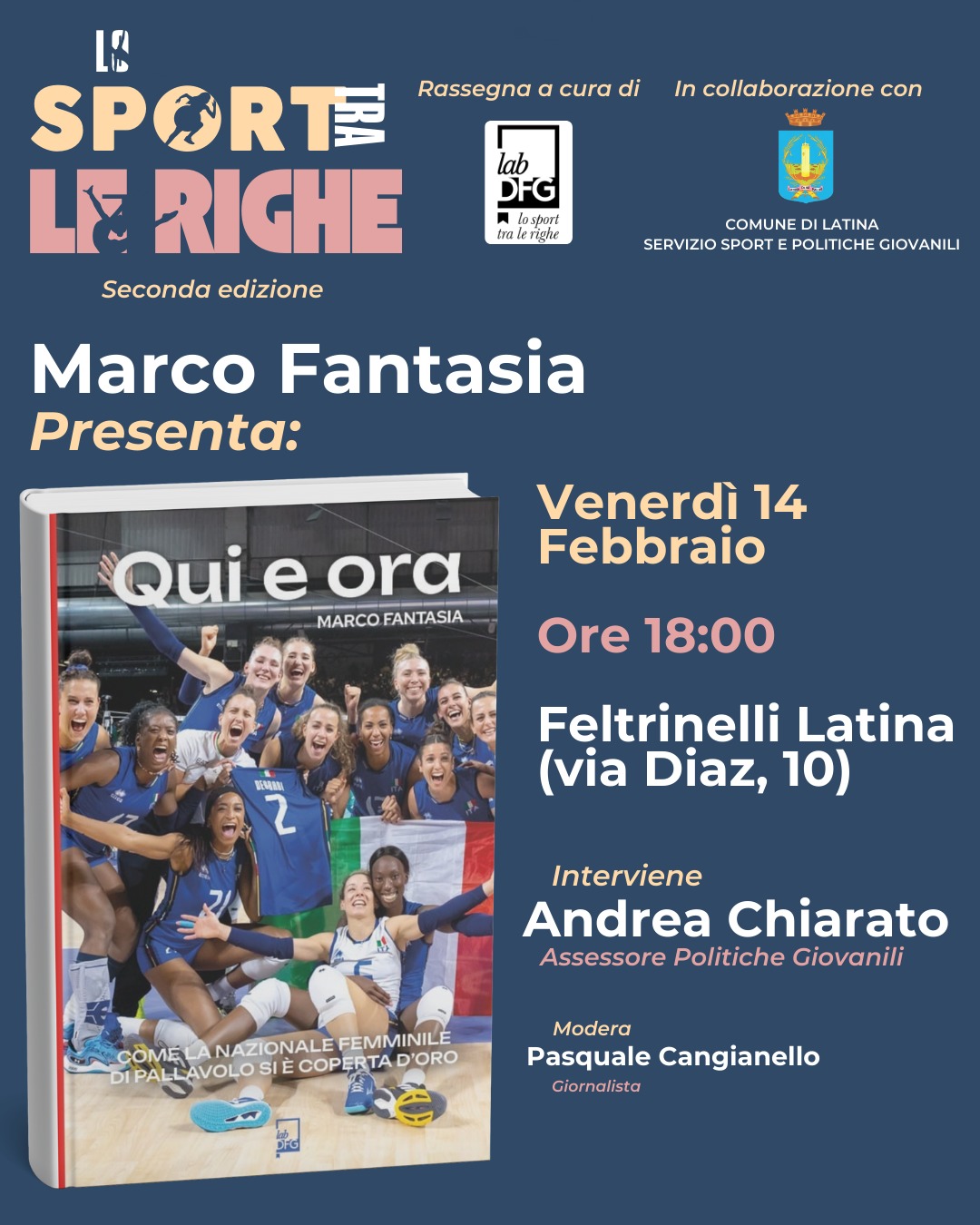 Per la seconda edizione di “Lo Sport tra le Righe”, la rassegna letteraria della Lab DFG organizzata in collaborazione con il servizio Sport e Politiche Giovanili del Comune di Latina, è pronto a presentarsi alla città, l’autore del libro “Qui e Ora”, Marco Fantasia.