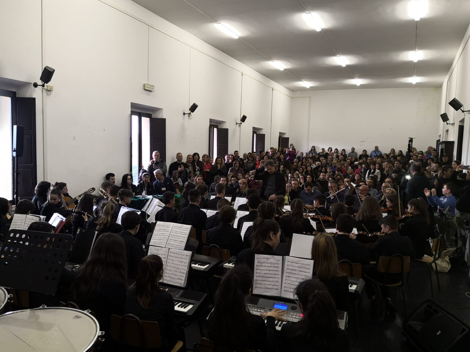 L’orchestra Matteotti ha eseguito nella sala del liceo Sulpicio di Veroli: inno composto da Pio Spiriti, Con te partirò portata al successo da Andrea Bocelli e un medley delle musiche degli anni ’70. Il Coro Matteotti ha eseguito “o sing out with pleasure” di Handel e un arrangiamento di Bohemian Rhapsody dei Queen per due voci, pianoforte e violino proposto da Riccardo Toffoli.
