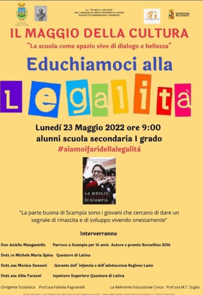 La Questura di Latina ha incontrato gli studenti dell’Istituto Comprensivo “Plinio il Vecchio” di Cisterna di Latina, nell’ambito dell’iniziativa Educhiamoci alla legalità in concomitanza con la ricorrenza del 30° anniversario della strage di Capaci, dove persero la vita il magistrato Giovanni Falcone, la moglie Francesca Morvillo e gli agenti della scorta Vito Schifani, Rocco Dicillo e Antonio Montinaro.