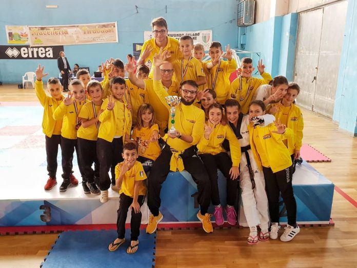La Fenice di Borgo Hermada sempre piu’ regina d’Abruzzo. Il team ha conquistato per la terza volta consecutiva il 1° posto nella classifica generale delle società sportive per le categorie esordienti A-B e cadetti B nel Campionato Interregionale di Taekwondo d’Abruzzo con 8 ori, 6 argenti e 1 bronzo. La competizione, promossa dalla Fita (Federazione Italiana Taekwondo), si è disputata sabato 3 novembre ed ha visto la partecipazione di 300 giovani atleti che si sono affrontati in avvincenti combattimenti sui tatami del Palasport di Celano (AQ). Il D. T. della Fenice Simone Longarini, coadiuvato dal coach Leonardo Longarini, ha schierato 18 atleti: 13 esordienti, 4 cadetti B e 1 cadetto A. Hanno vinto l’oro negli esordienti Tamangi Riccardo, Zappone Andrea, De Bonis Martina, Senesi Diego, Nocera Filippo. Nei Cadetti B : oro per Petrucci Matteo, Cormons Edison Andres e Giulia Senesi. L’argento negli esordienti l’ha conquistato Mazzocchi Tommaso, Fia Gianni, D’Auria Francesco, Piroli Davide, Mazzocchi Alessio e Parisella Aurora. Medaglia di bronzo per Mandatori Samuele sempre negli esordienti. Dai cadetti A cinture nere, poi, è arrivato il nono (9) oro con Macchione Flavia. Buone le performance di Chianca Sara e Sperlonga Raoul che si sono fermati ai piedi del podio.
