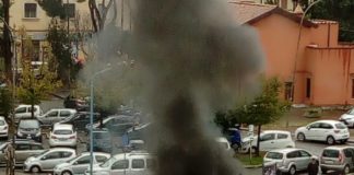 Latina, auto in fiamme in piazza Celli. Le foto