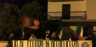 Azione notturna da parte dei militanti di CasaPound Latina che sono tornati davanti alle Case dei Papà per affiggere uno striscione dal testo "Gas...