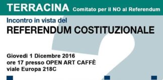 Appuntamento a Terracina con il Comitato per il NO al Referendum Costituzionale. Il Primo dicembre, con inizio alle 17, presso Open Art Caffè, di...
