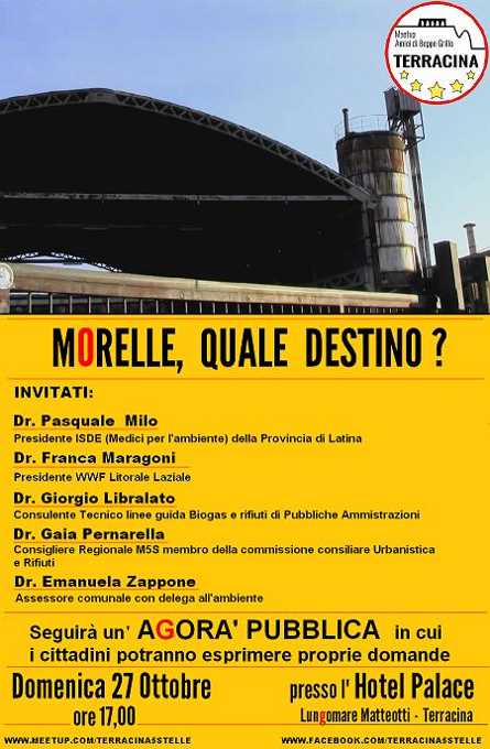L’argomento Morelle è di attualità ed è al centro di un convegno / appuntamento con la cittadinanza organizzato dal meetup Terracina 5 Stelle domenica 27 ottobre, alle 17, presso la sala convegni dell’hotel Palace, a cui la consigliera regionale prenderà parte.