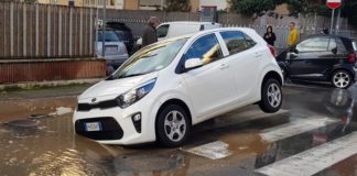 Terracina, auto impiantata nella buca piena d’acqua