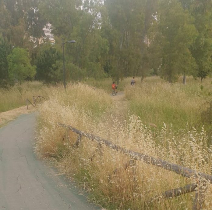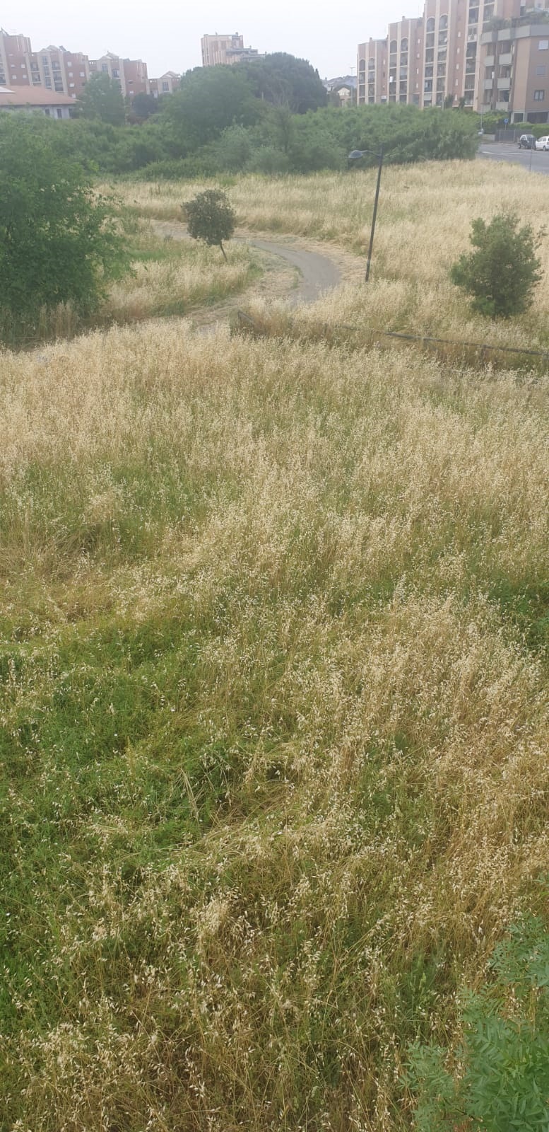 Ebbene, le foto che ho potuto scattare nella giornata di domenica 17 maggio dimostrano come nulla di tutto questo sia stato fatto. L’erba è ancora alta e incontrollata in gran parte del quartiere, sui marciapiedi non è stata tagliata e la stessa pista ciclabile all’interno del parco è ancora invasa dalle erbacce, mentre gli sfalci fatti sono stati abbandonati sul posto.